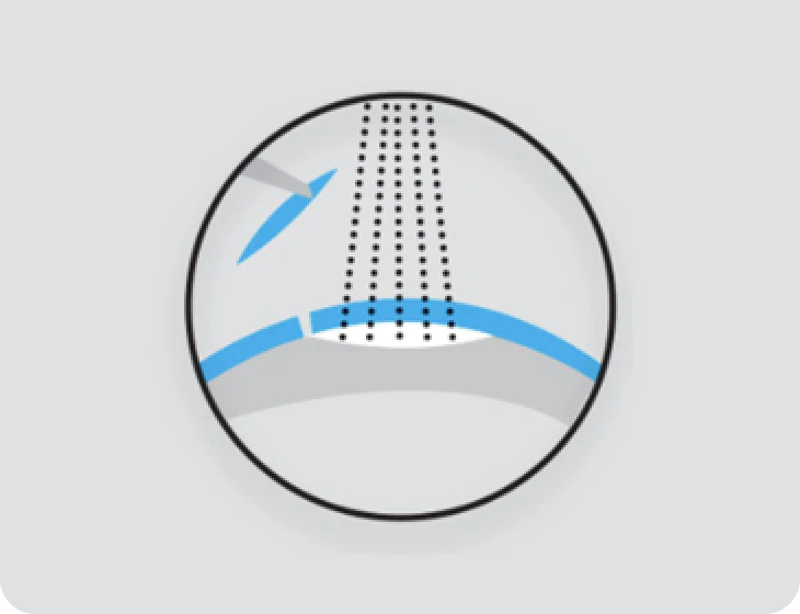 Na técnica LASIK, é criado um fino “flap” na córnea, que é levantado para o laser atuar nas camadas internas e, em seguida, ser reposicionado.